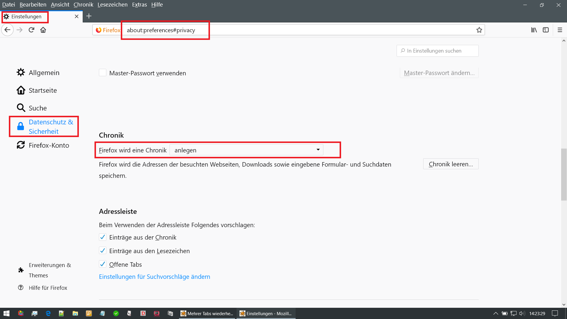 Wenn ich Firefox runter fahre und den Rechner ausmache und danach den Rechner neu starte, dann macht er die alten Tabs nicht wieder auf.