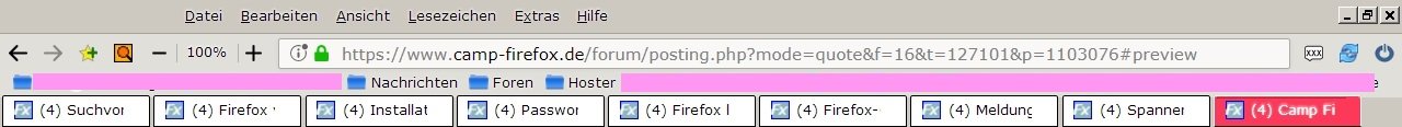 Das schiebt die Tab-Leiste über die Lesezeichensymbolleiste.