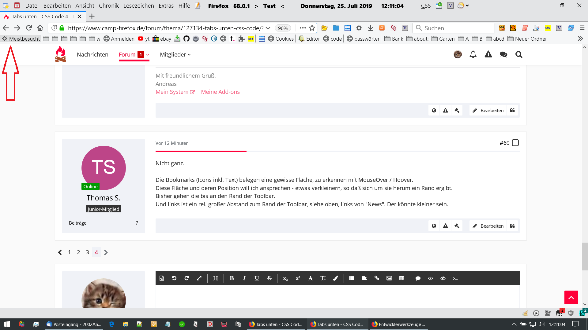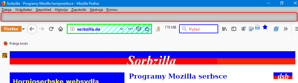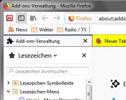Ich habe die Titelleiste aktiviert,darunter das Menü,darunter die Buttons und darunter eine Lesezeichenleiste.