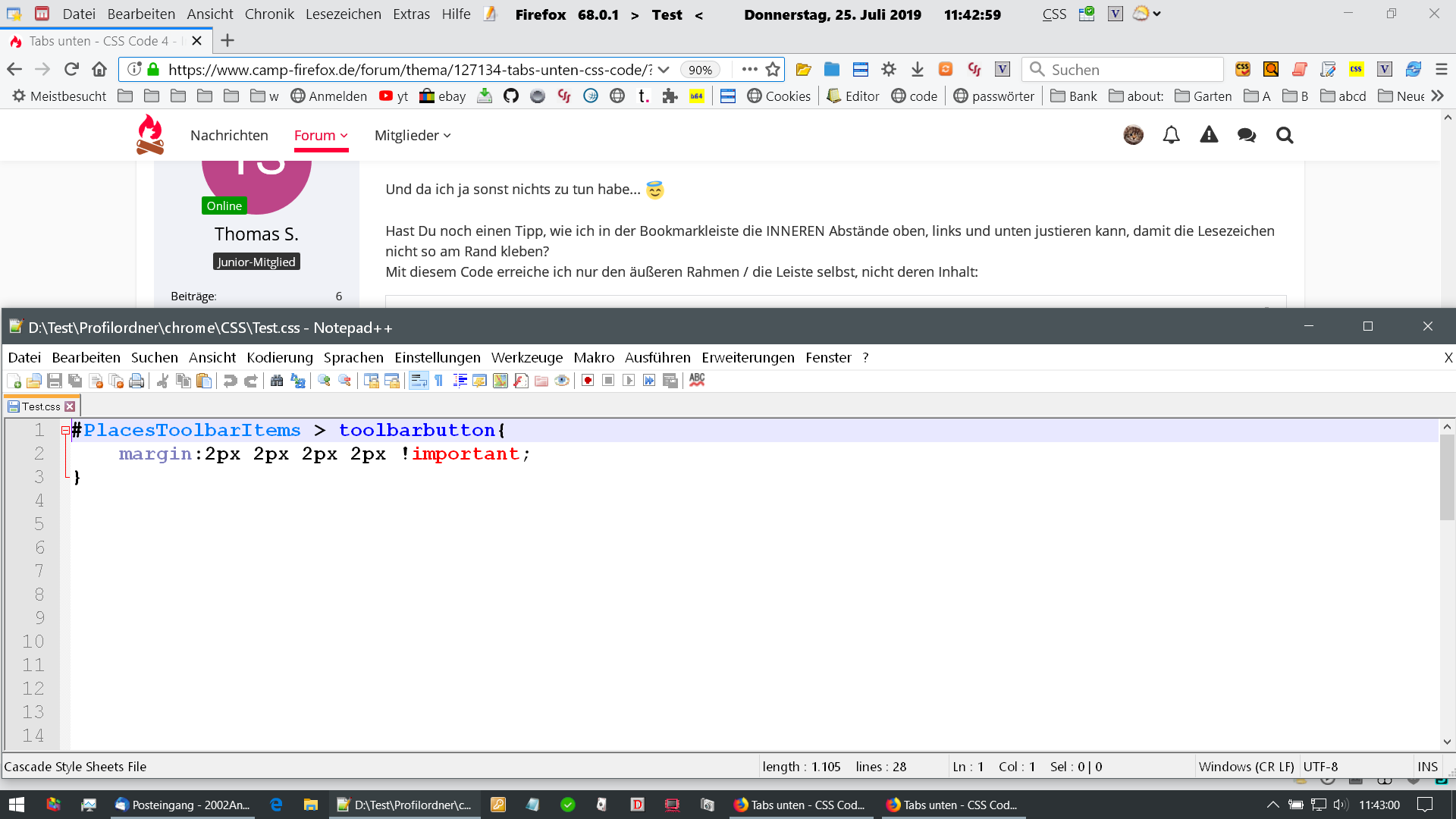 Hast Du noch einen Tipp, wie ich in der Bookmarkleiste die INNEREN Abstände oben, links und unten justieren kann, damit die Lesezeichen nicht so am Rand kleben?