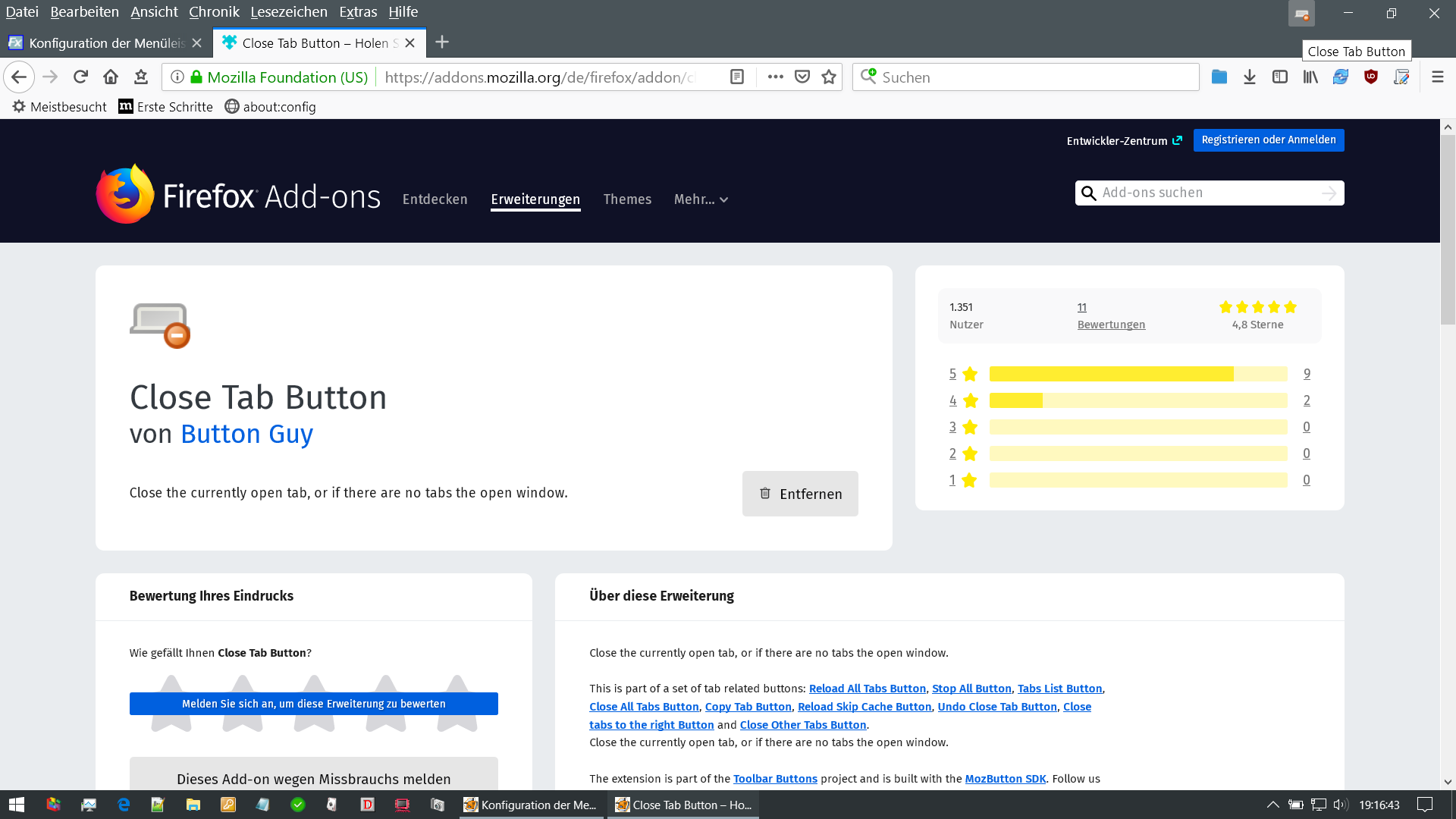 Es geht um den "Close-Tab"-Button, per Add-On Close Tab Button erstellt.
