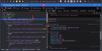 Mit dem Zieldokumentauswähler lässt sich beispielsweise direkt das gewünschte Iframe auswählen, welches man gerne inspizieren möchte. (hier der Feedreader selbst --> siehe Screenshot 3), damit man dann später mittels des Inspektors jedes Element des Feedreader selbst frei inspizieren kann wie auch CSS-Regeln direkt temporär abändern kann. (siehe Screenshot 4) Innerhalb des Reiters Stilbearbeitung kann dann noch jede verwendete CSS-Datei begutachtet werden.