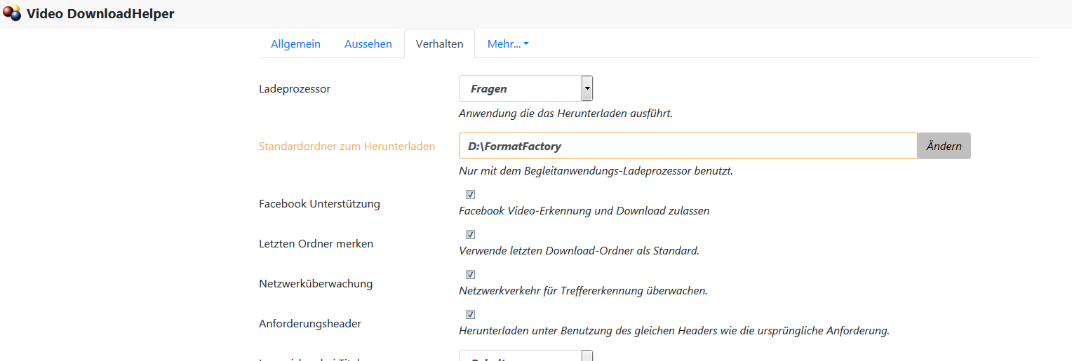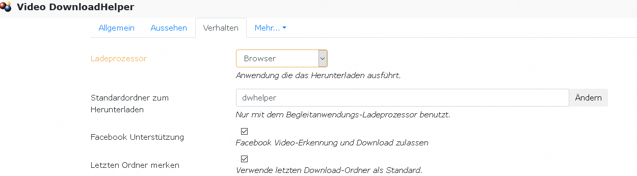 Dabei sind die Einstellungen im Video DownloadHelper (Vers. 7.3.5) wie folgt: