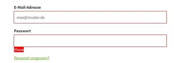 Login Fenster wie hier, E-Mail-Adresse und Passwort