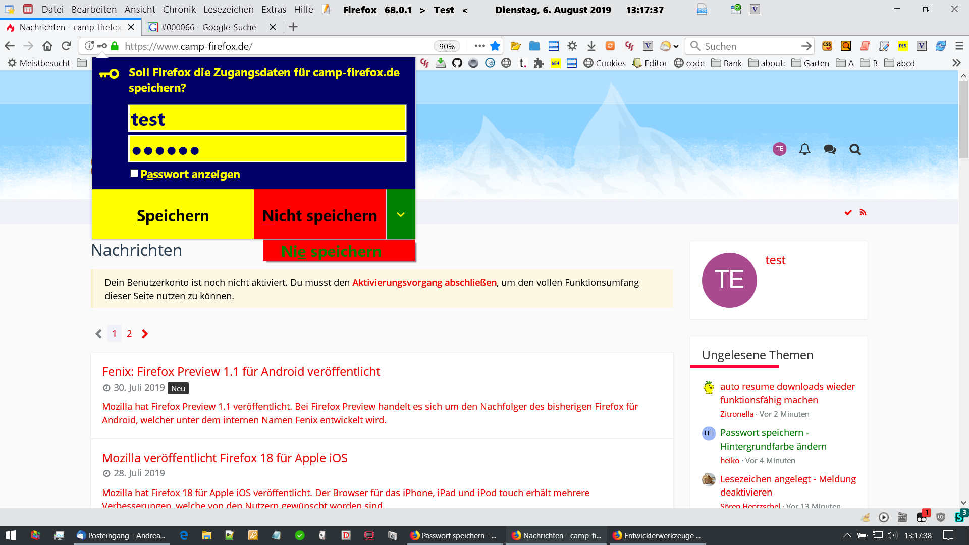 • Mein Screenshot-Programm spinnt. Es zeigt den Eintrag "Nie speichern" doppelt an. Oben habe ich den Eintrag versehentlich weggeschnitten. Hier der korrekte Screenshot.