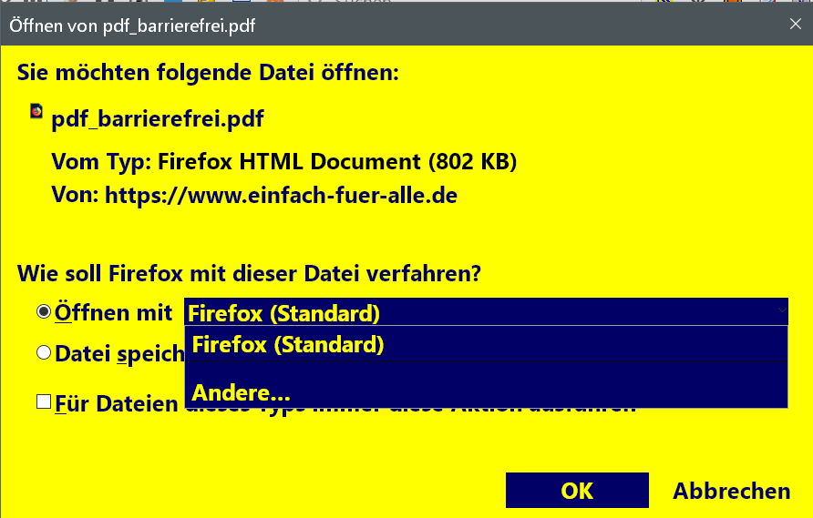 Download-Fenster (Öffnen mit, Datei speichern) einfärben