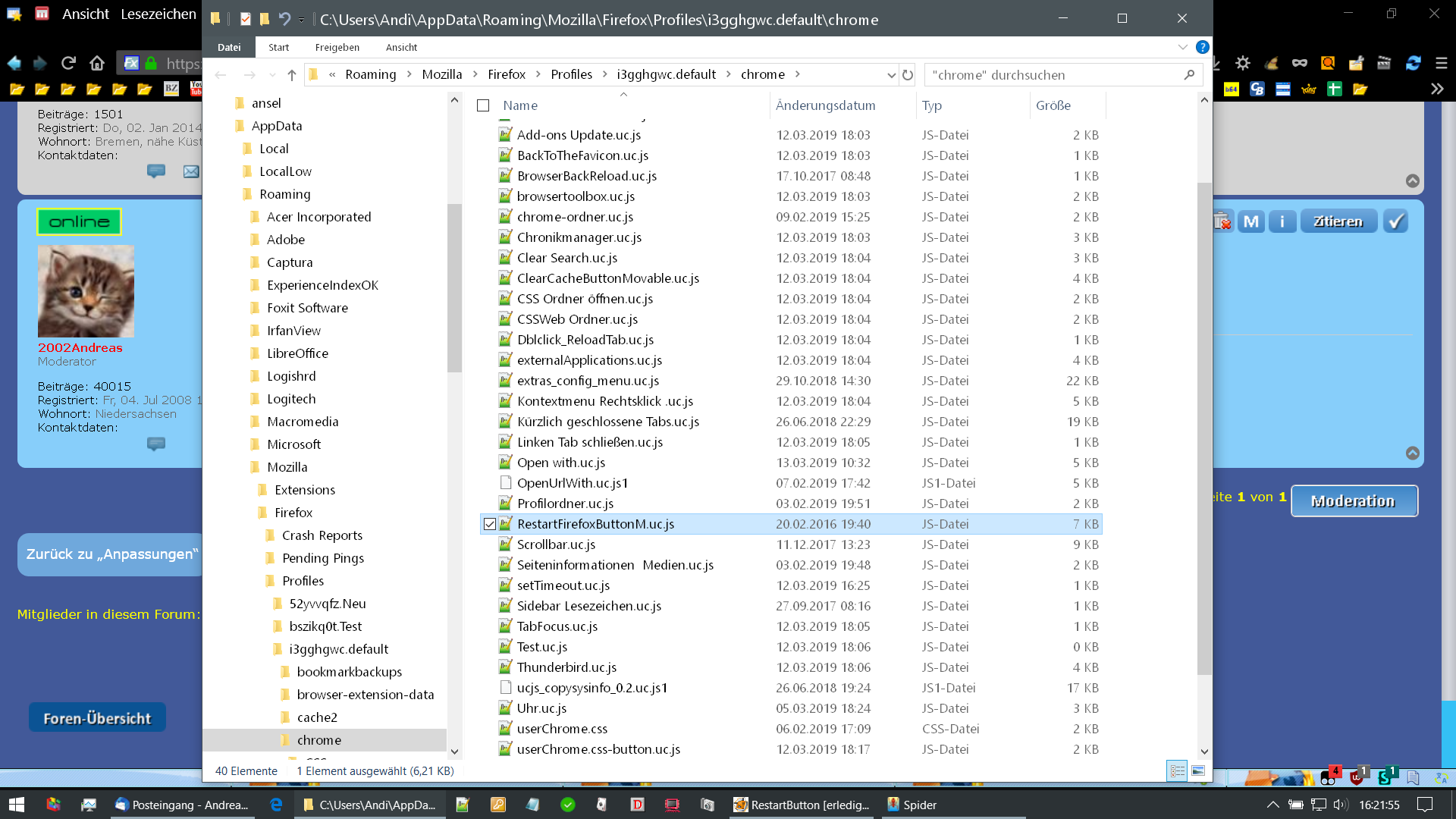 Und schließlich: Die Vorbereitung für beides trifft man nur einmal, wenn man weder Installationsverzeichnis (nur für Skripte) noch Profilverzeichnis (für Skripte und CSS) ändert und die ist in ein paar Minuten erledigt. Das war es dann auch schon.