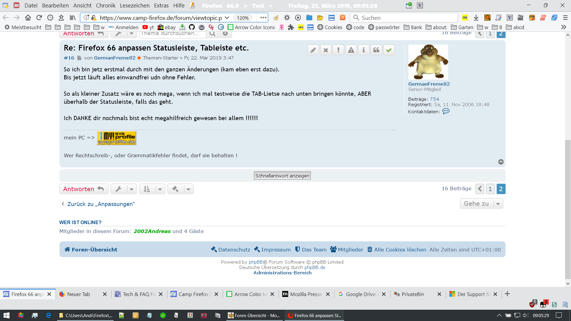 Ich brauch bitte dringend einmal eure Hilfe, denn ich bekomme meinen Firefox einfahc nicht wieder so hin, wie er im FF 64 war. Vieles habe ich bereits versucht, doch irgendwie ist da echt der Wurm drinn und ich bin am verzweifeln.