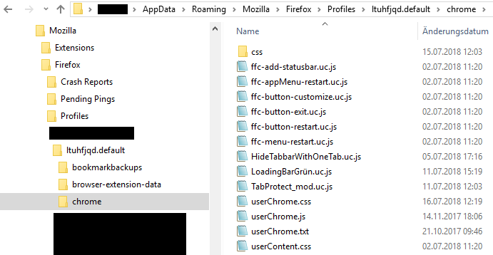 Aktuell hab ich noch ALLE Scripte und Vorbereitungen vom Firefox 64 drinne inkl. der Ordner und das sieht dann genau so aus bei mir: