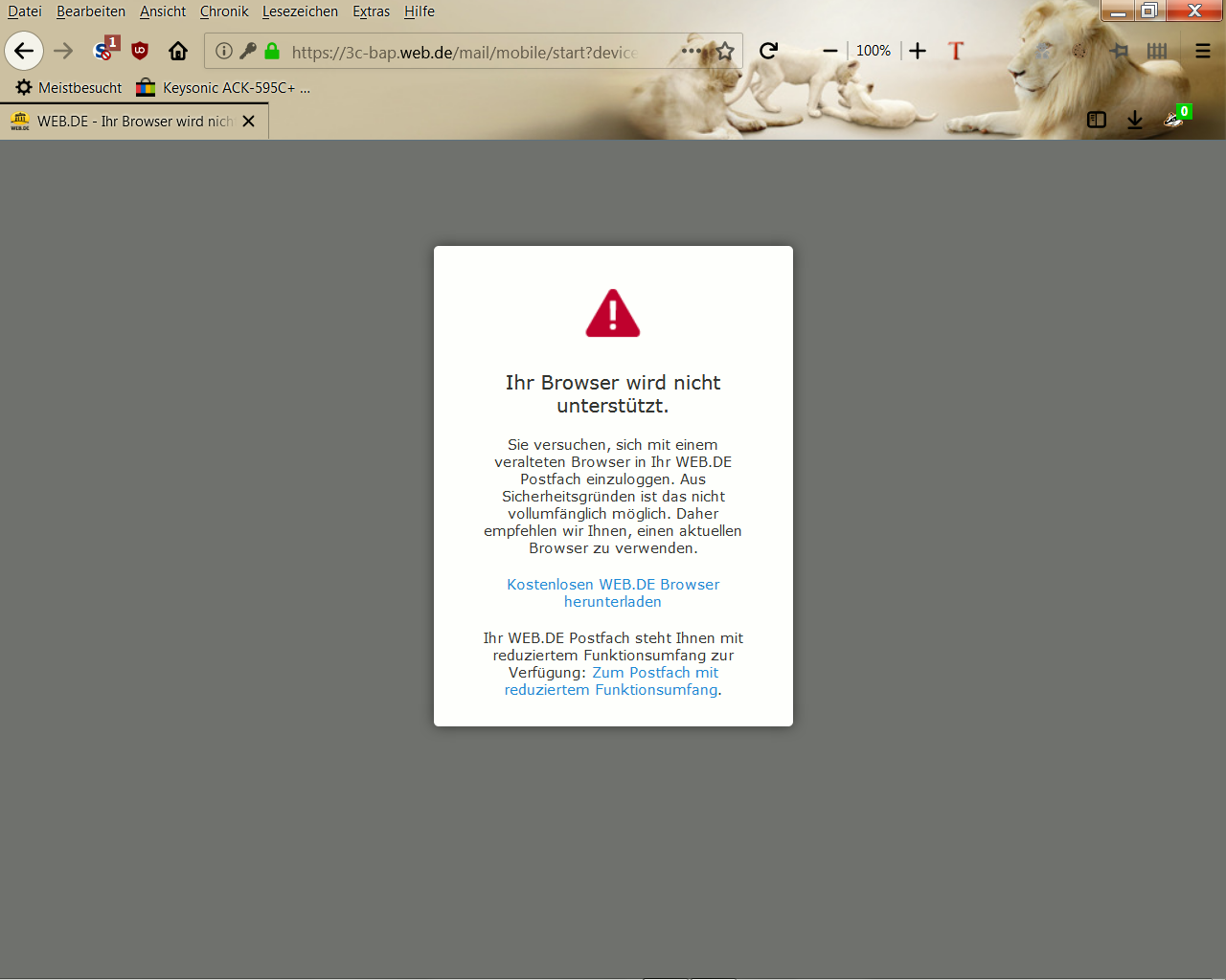 web.de akzeptiert Firefox Quantum nicht, angeblich veraltet