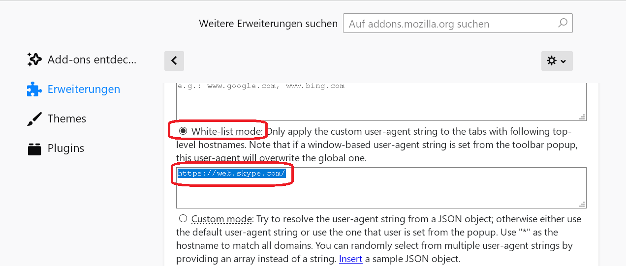 Es ist ein Firefox Addon klar, aber diese Erweiterung mogelt der Skype Seite vor, dass du den Google Chrome Browser nutzt und nicht den Firefox. Du kannst einmal die von Sören genannte Einstellung so lassen.