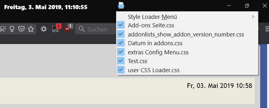 Jetzt habe ich in Statusleiste 2 x einen Button, einen als Icon und einen mit der Bezeichnung CSS. Beide haben die Menüfelder und funktionieren.... ich benötige aber nur einen Button, am Liebsten den mit dem Icon...