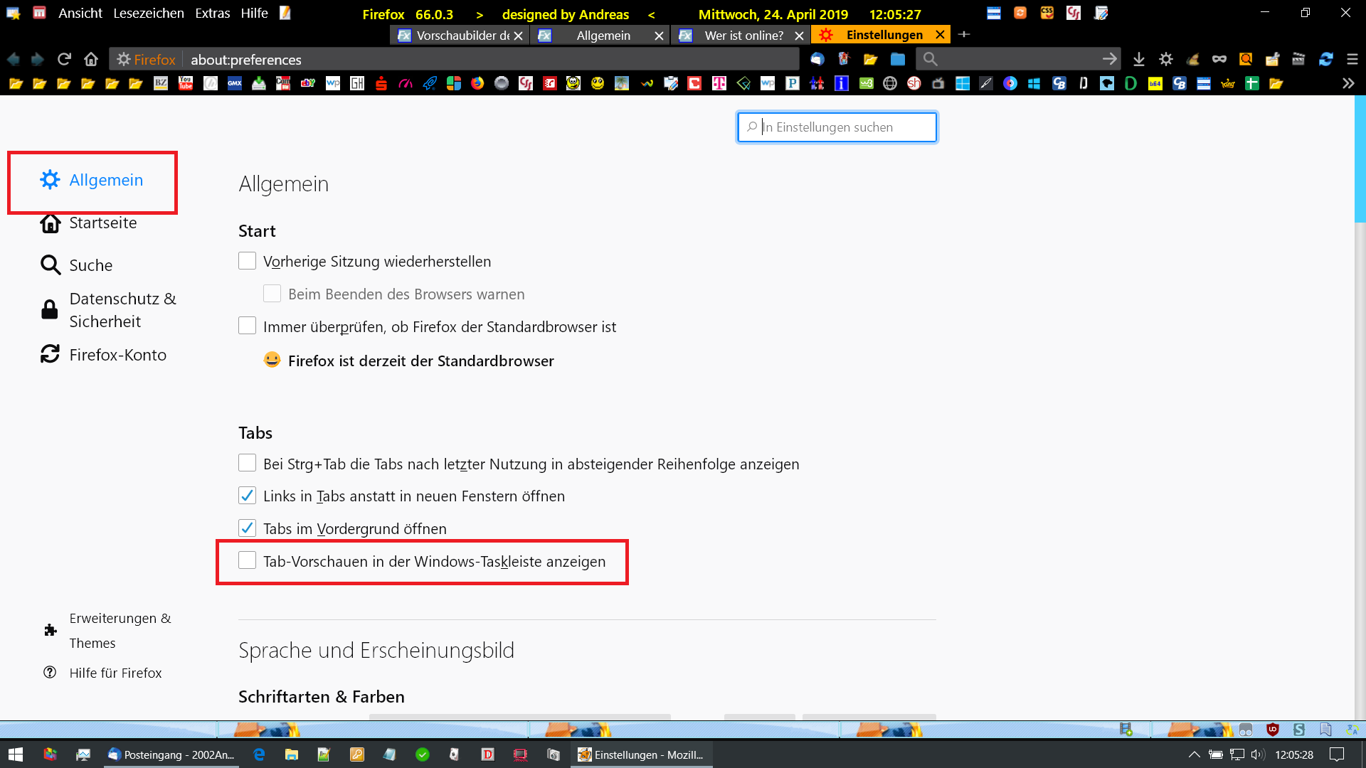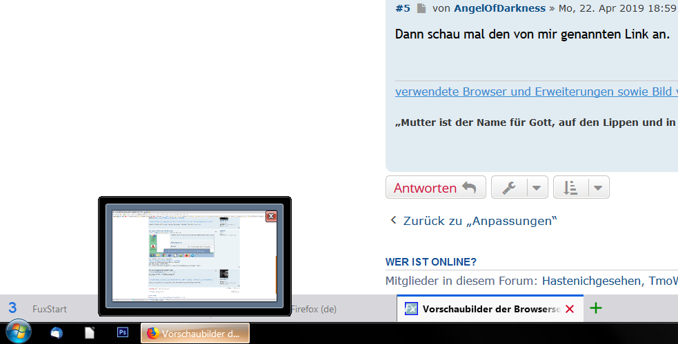 Vorschaubilder der Browserseite.