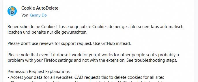 ich würde gerne Ausnahmen zu Zugangsdaten speichern. Dies funktioniert auch während Firfox geöffnet ist. Wenn ich jedoch Firefox schliesse, wird anscheinend durch Cookie AutoDelete die Daten entfernt.