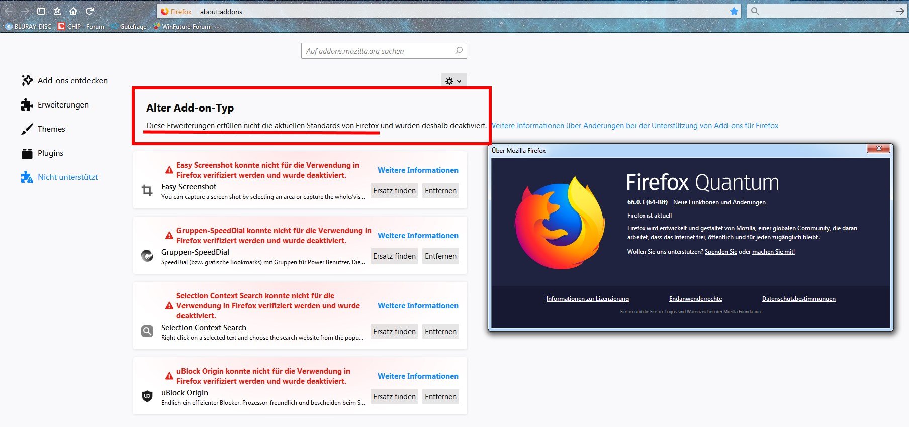 5.5.2019, Addons erfüllen den FF Standard nicht mehr !!