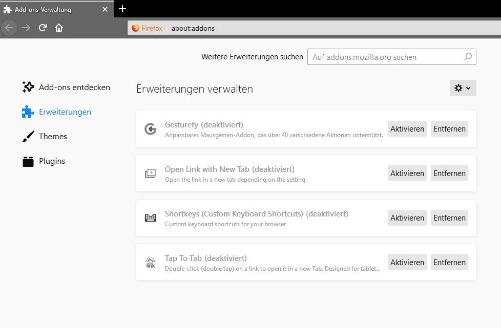 In Beitrag #11 ist aber ein Ausschnitt der Informationen zur Fehlerbehebung zu sehen. Das ist nicht der Add-on-Manager.