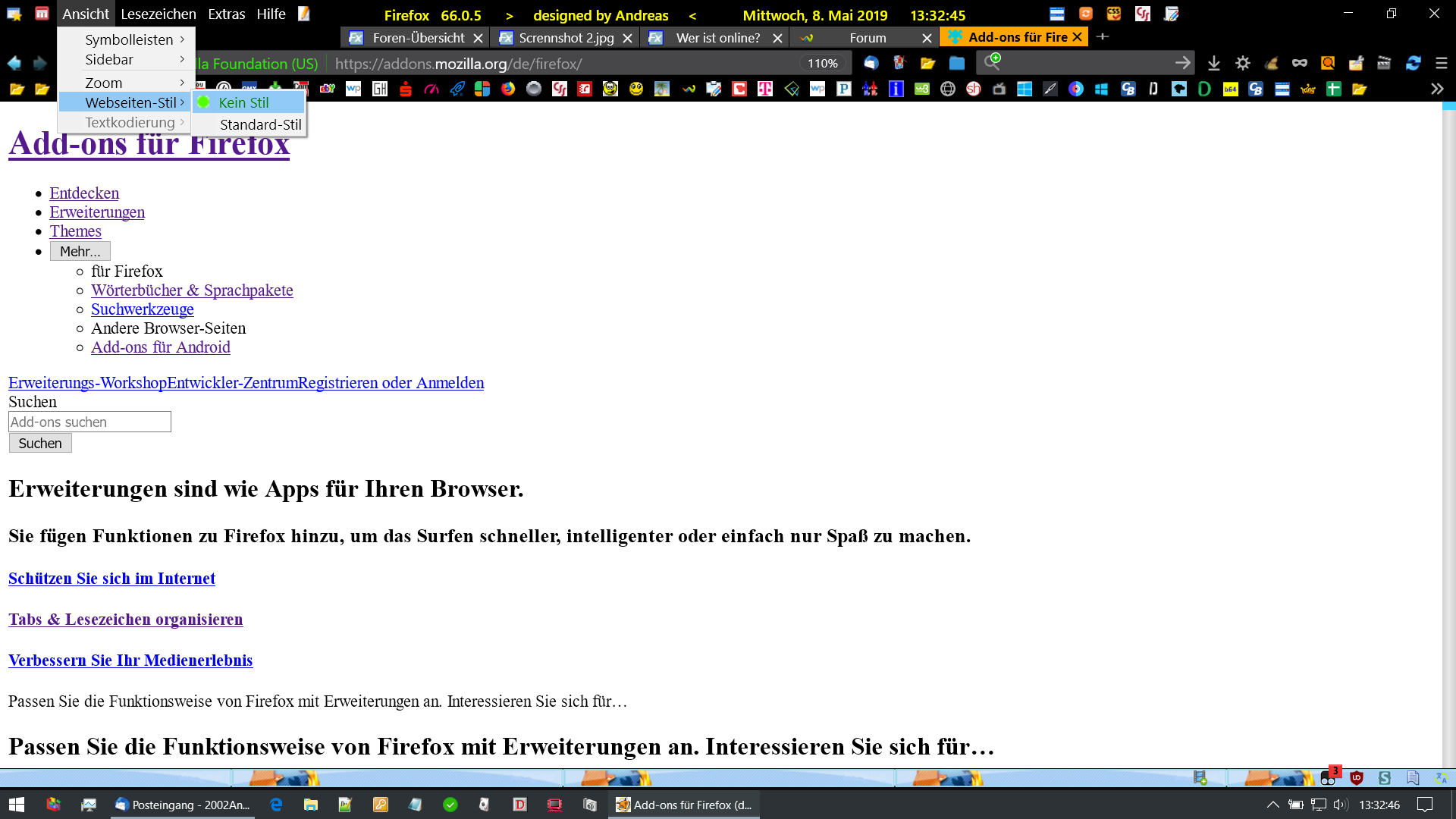 - viele Seiten werden nicht mehr korrekt dargestellt, wie z.B. Youtube (abspielen von Videos nicht mehr möglch)