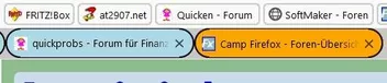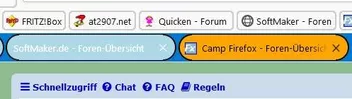 auf dem PC habe ich meine Tabsleiste unterhalb der Lesezeichenmenüleiste. Ausserdem die Tabs rund und farbig.
