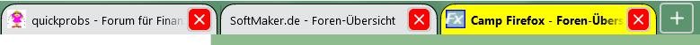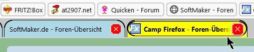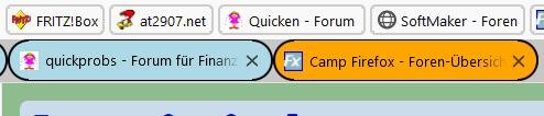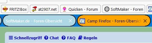 Soweit, so gut. Nun wollte ich wieder zurück auf Tabs rund und farbig, habe vorgenannte Datei um benannt, entsprechend die Änderungen im CSS-Ordner und userChrome.css gemacht.