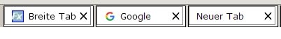 Jetzt sieht ein einzelner Tab sehr breit aus und die Breite variiert, je nachdem, wie hoch die Anzahl der geöffneten Tabs ist. Je mehr Tabs, desto schmaler wird der einzelne Tab. Damit könnte ich noch leben, aber vielleicht ist eine Anpassung möglich.