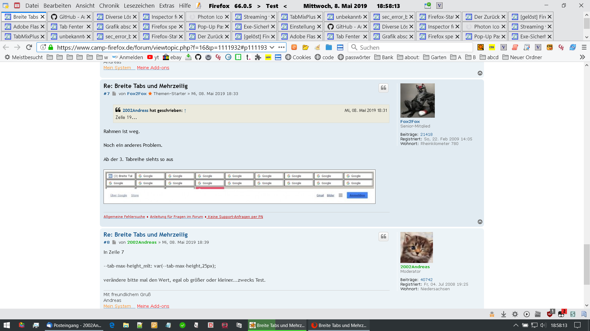 Tab_mehrzeilig_Breite_und_Höhe_verringern.css hat mit der aktuellen Version Probleme gemacht, also habe ich die CSS rausgeschmissen. Das hat die Tabs in der Höhe verringert, war also geringer als die Tableiste. Mehrere Tabs hatten verschiedene Höhen.