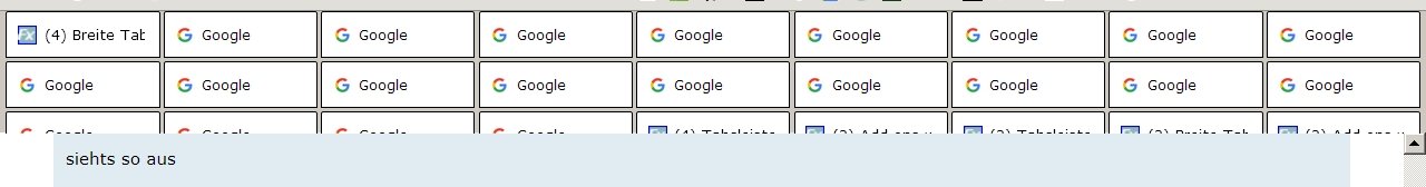 Jetzt sieht ein einzelner Tab sehr breit aus und die Breite variiert, je nachdem, wie hoch die Anzahl der geöffneten Tabs ist. Je mehr Tabs, desto schmaler wird der einzelne Tab. Damit könnte ich noch leben, aber vielleicht ist eine Anpassung möglich.