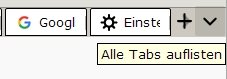 Ab einer höheren Anzahl von geöffneten Tabs zeigt sich am Ende der Tableiste dieses "Alle Tabs auflisten"