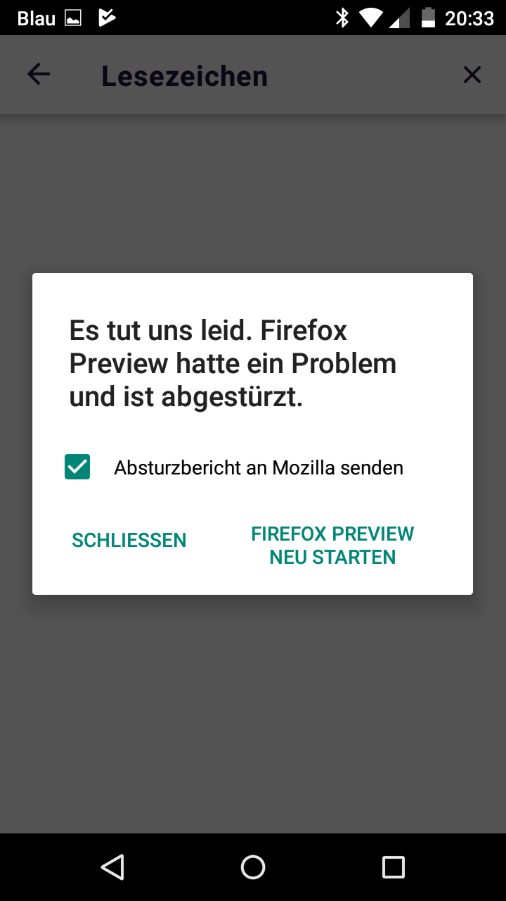 • Eines der Probleme die ich mit dem "aktuellen" Firefox immer hatte war, das er scheinbar Abgestürzt ist als das Gerät im Standby war. Beim Öffnen kam dann der Absturzmelder.