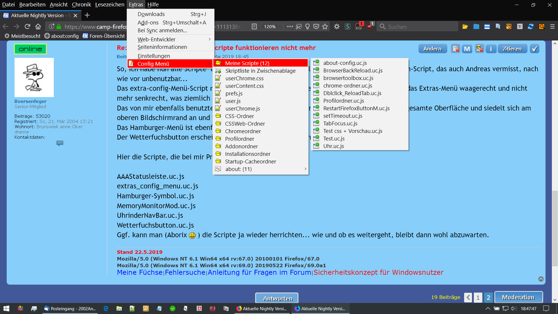 Auf Grund einer Änderung im Nightly funktionieren 2 für mich wichtige Scripte leider nicht mehr.