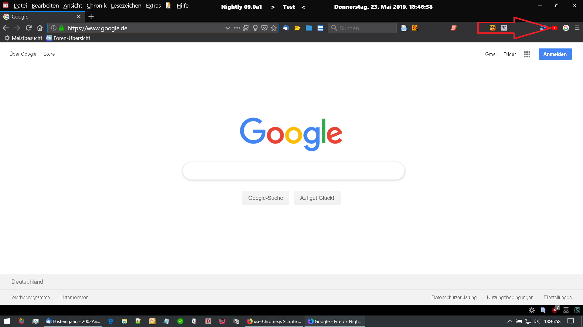 • Mehr habe ich nicht, nur userChrome funktioniert, das hier, nach änderung funktioniert wieder: