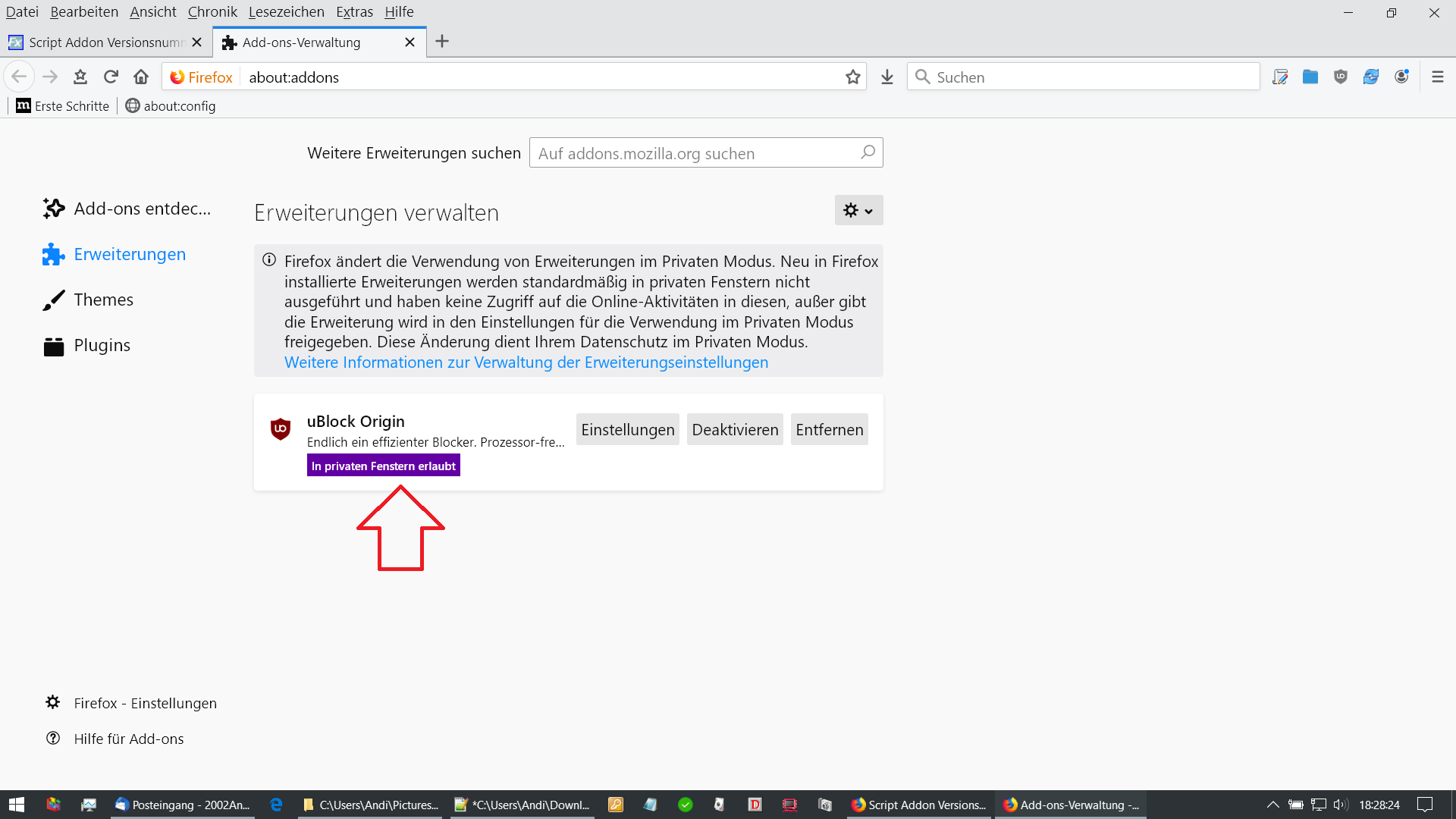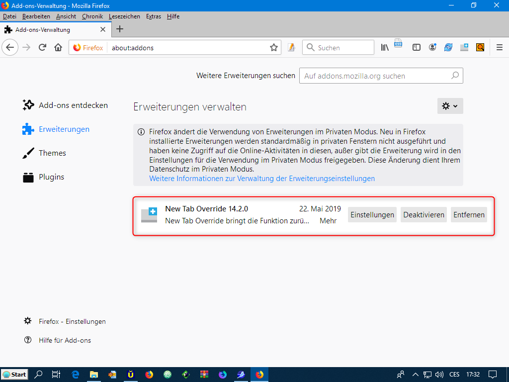 Aber leider wird der neue Eintrag "Addon im privaten Modus öffnen" den FF67 eingeführt hat nicht angezeigt.