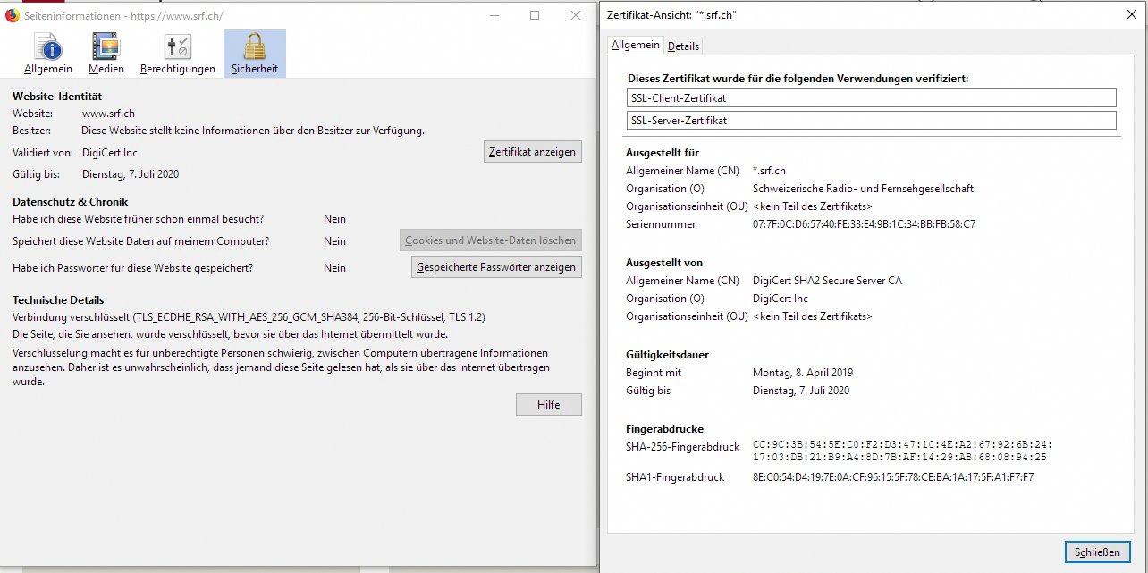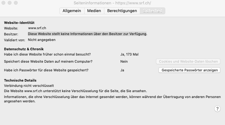 Bei dieser URL https://www.srf.ch kommt die Meldung bei den Seiteninformationen Sicherheit/Besitzer: