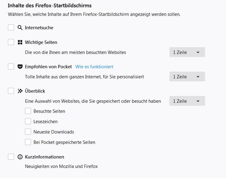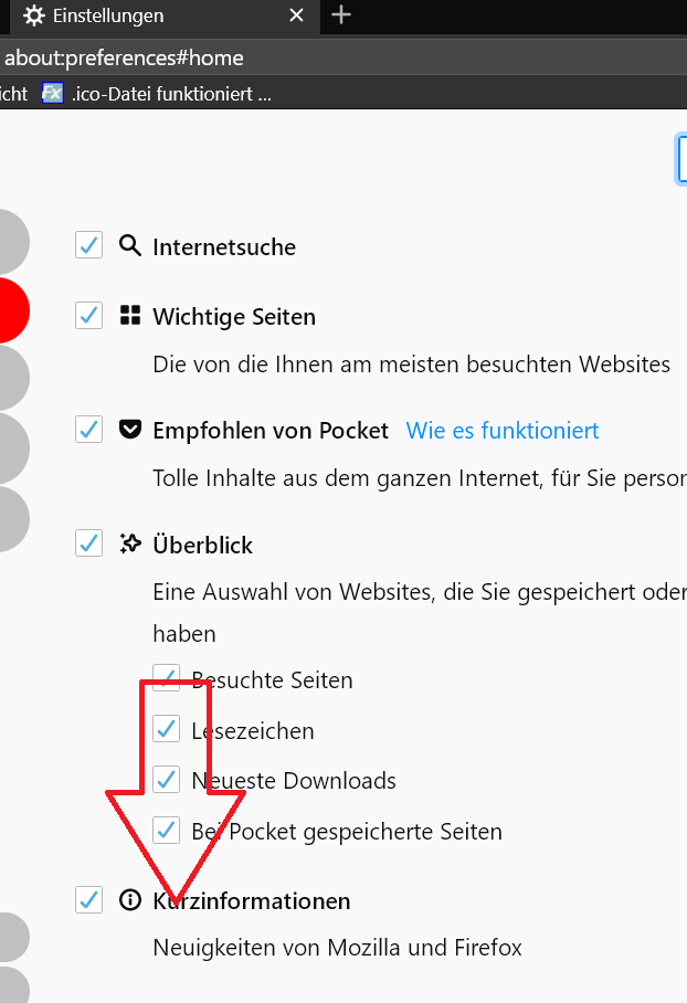 Etwas mysteriös ist es doch: Ich habe Fx 69 mit dem RestartFirefoxButton gestartet und den Cache dabei geleert, da war die Meldung weg, aber auch das i-Symbol. Solange die Meldung angezeigt wird, ist das i-Symbol sichtbar und man kann die Meldung ein- und ausschalten und das Vorschaubild darunter kommt zum Vorschein. Mir scheint, dass man die Meldung nicht reproduzieren kann und sie in geplanten Abständen erscheint. Dann kann man sie wieder ein- und ausschalten. Der Haken bei Kurzinformationen ist bei mir immer drin. Aber der wird wohl, wie auch Zitronella vermutet, nur die Standard-Startseite betreffen.