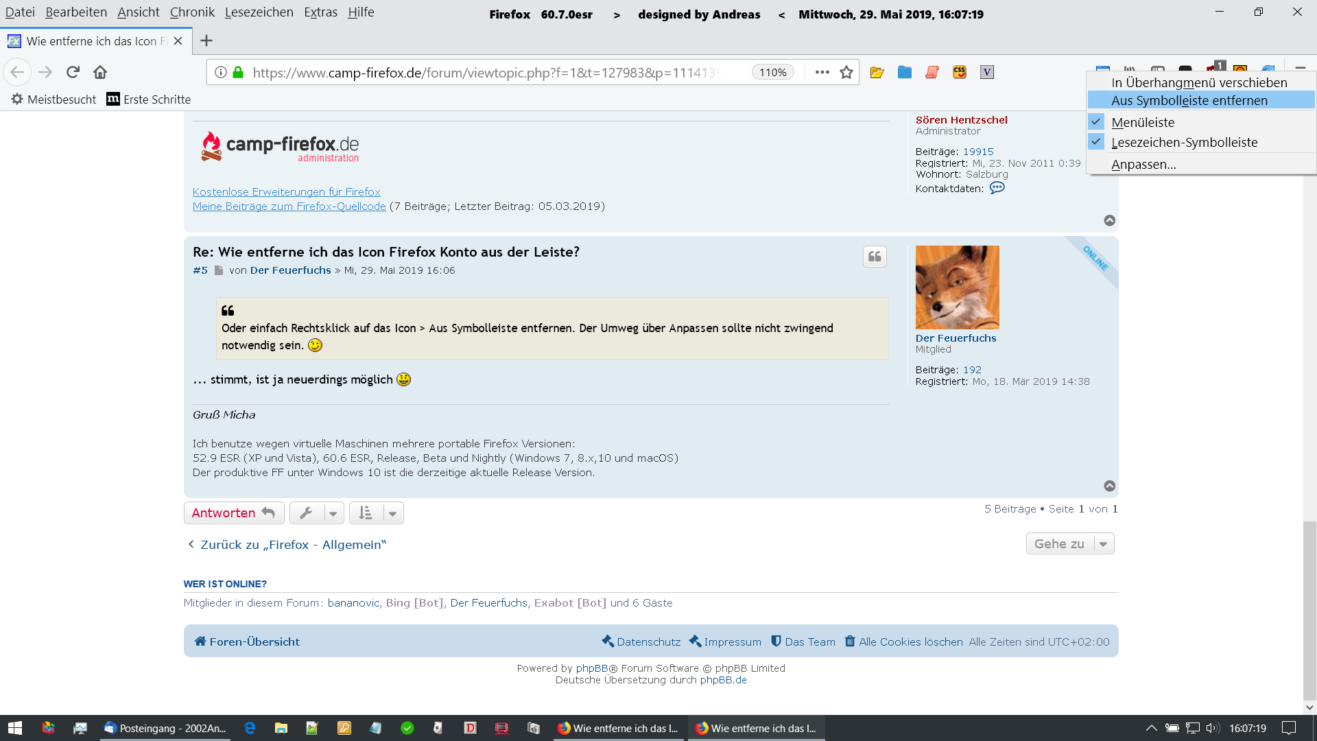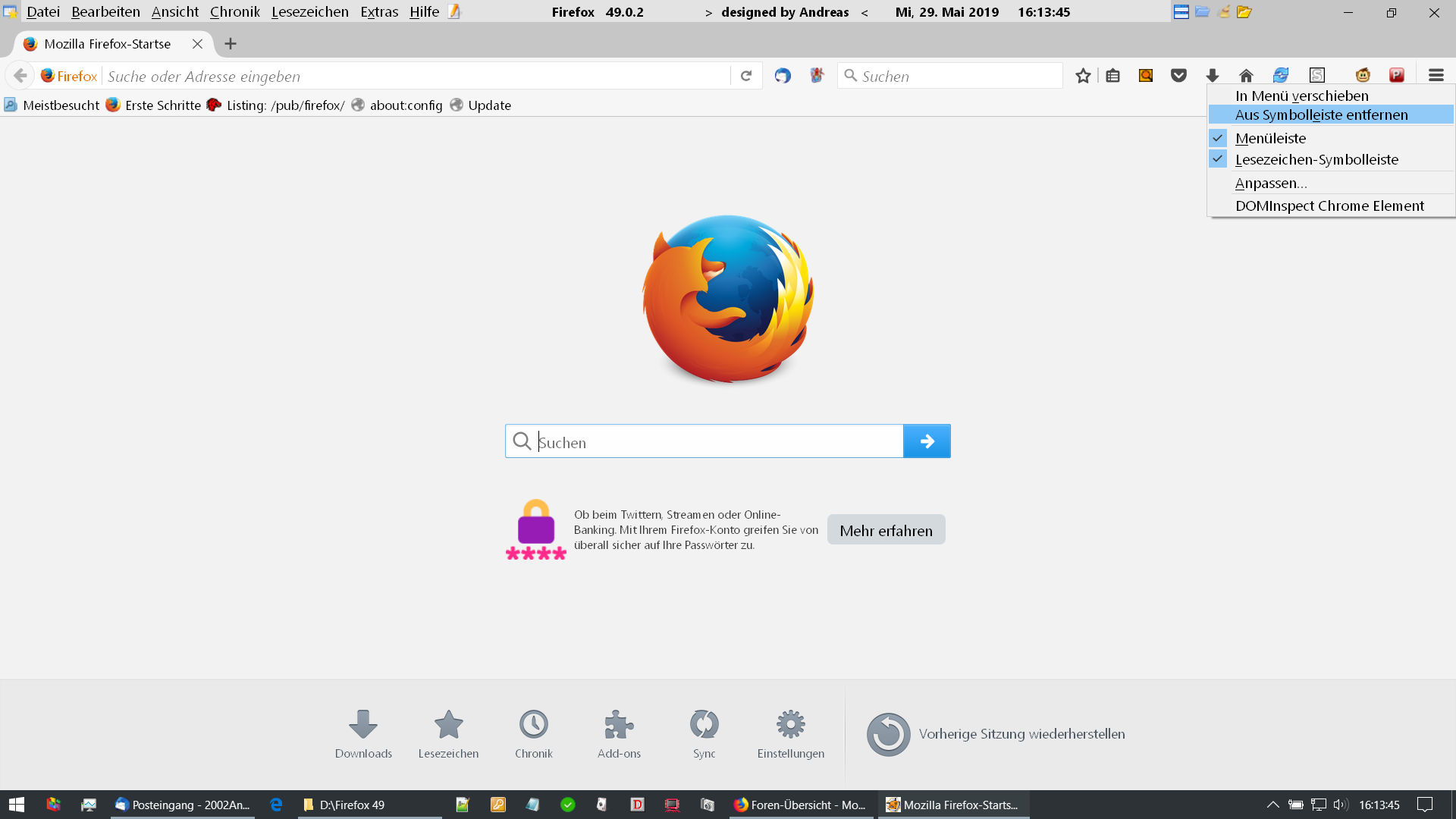 Wie entferne ich das Icon Firefox Konto aus der Leiste?
