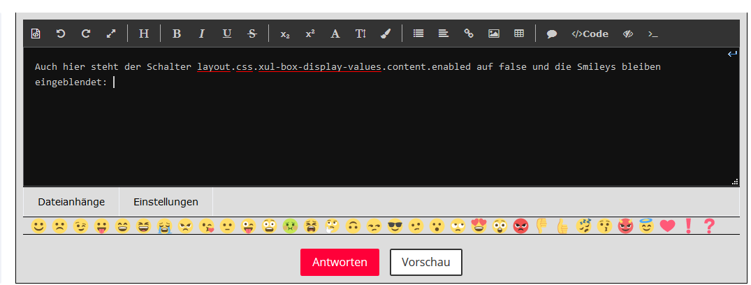 Gerade trotzdem mal versucht. Ändert nichts, die Smileys werden weiterhin nicht dauerhaft eingeblendet.