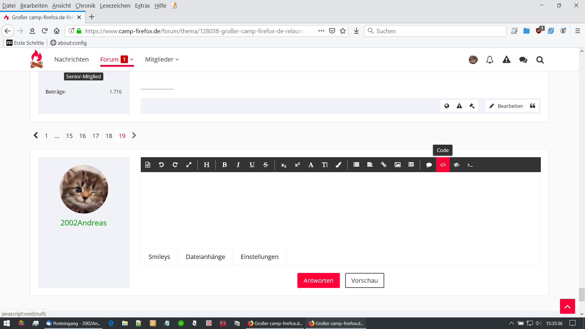 • Es wäre schön, wenn z. B. hier: </> [Code einfügen] hinterlegt wäre.