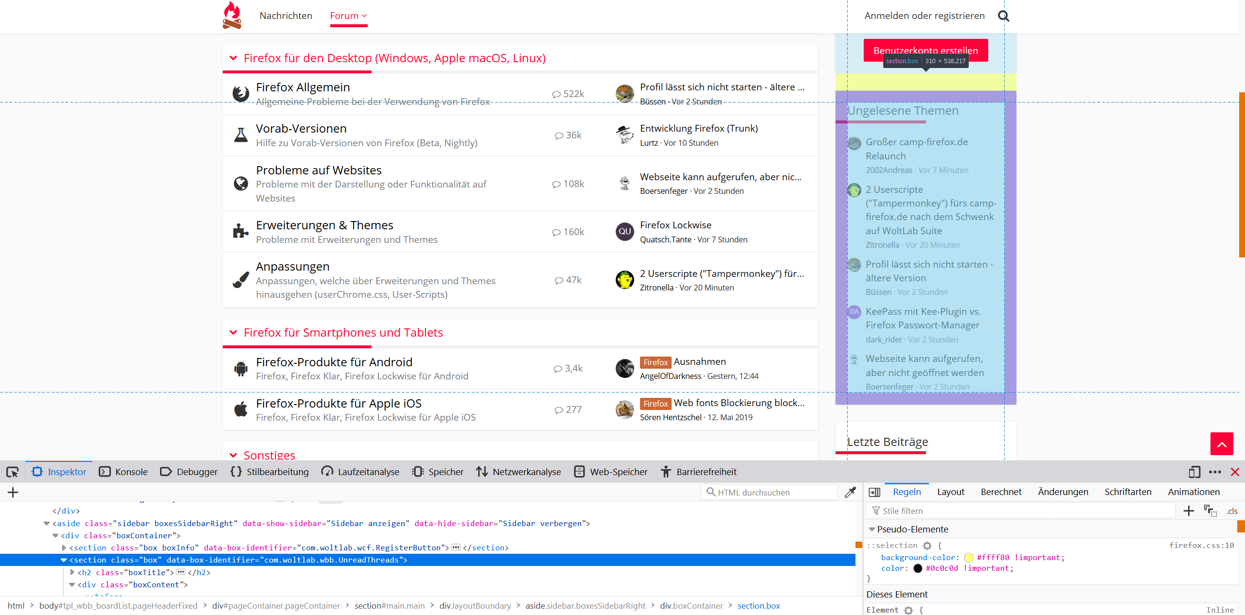 wie kann man (wenn es geht= über CSS die Box auf dem Index "Ungelesene Beiträge" ausblenden