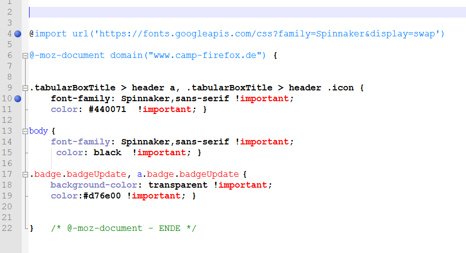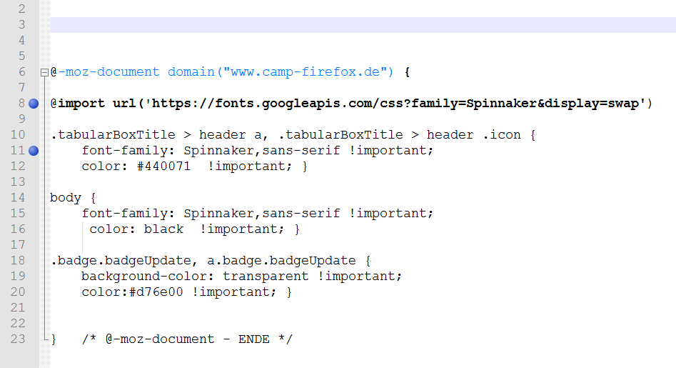 daher meine Frage wie man Google Font richtig einbinden für dieses Forum über CSS Datei vdes Fifeox.