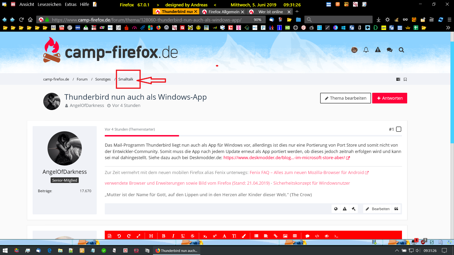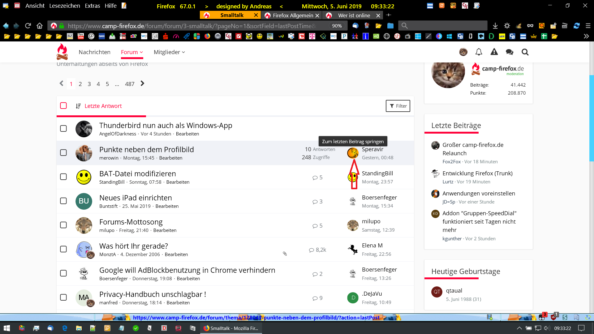 Wechseln zu anderen Beiträgen in derselben Rubrik (z.B. in Smalltalk) geht nicht mehr?
