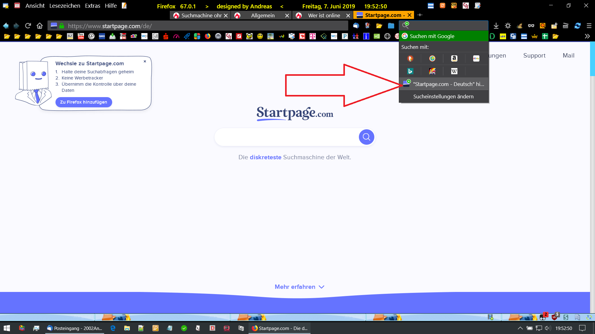 Die Seite Startpage aufrufen, und dann auf diesen Button klicken funktioniert nicht?