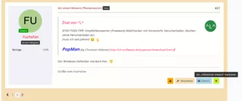 Bei dem Script ist mir noch aufgefallen, sofern ich einen neuen Beitrag einstelle, dann wirkt der Code nicht. Bei allen älteren Beiträgen aber trotzdem noch. Erst wenn ich einen anderes Thema aufrufe, und im Anschluss wieder zurückkomme, dann greift auch hier der Code wieder. Kannst Du das bitte mal überprüfen.