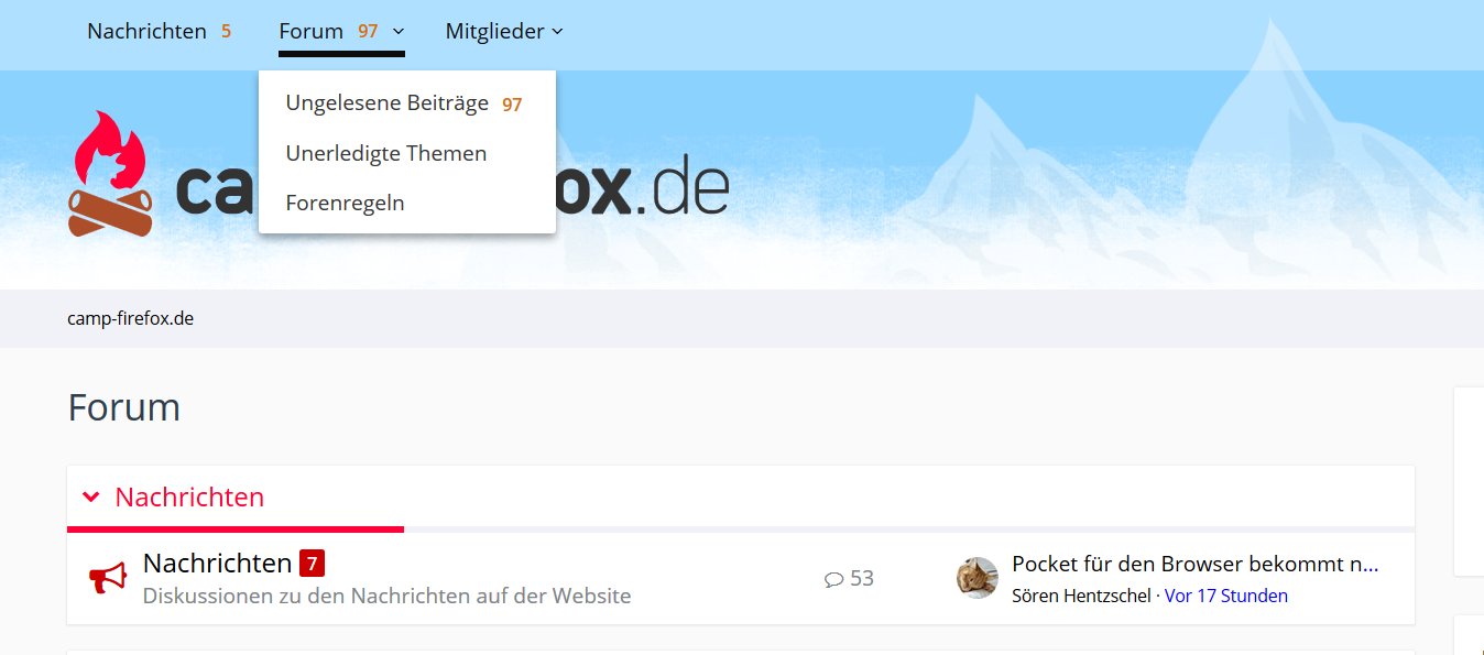 Damit meine ich nur in der Hauptnavigation nicht auch die im Forum selber.