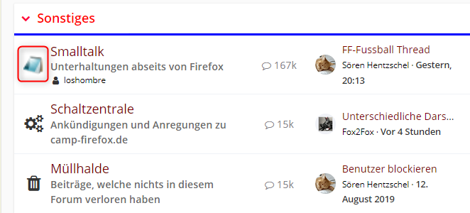 • Ich würde gerne in der Foren-Übersicht die Icons neben den Themen-Überschriften (z.B. die Kaffeetasse bei Smalltalk) durch andere ersetzen.