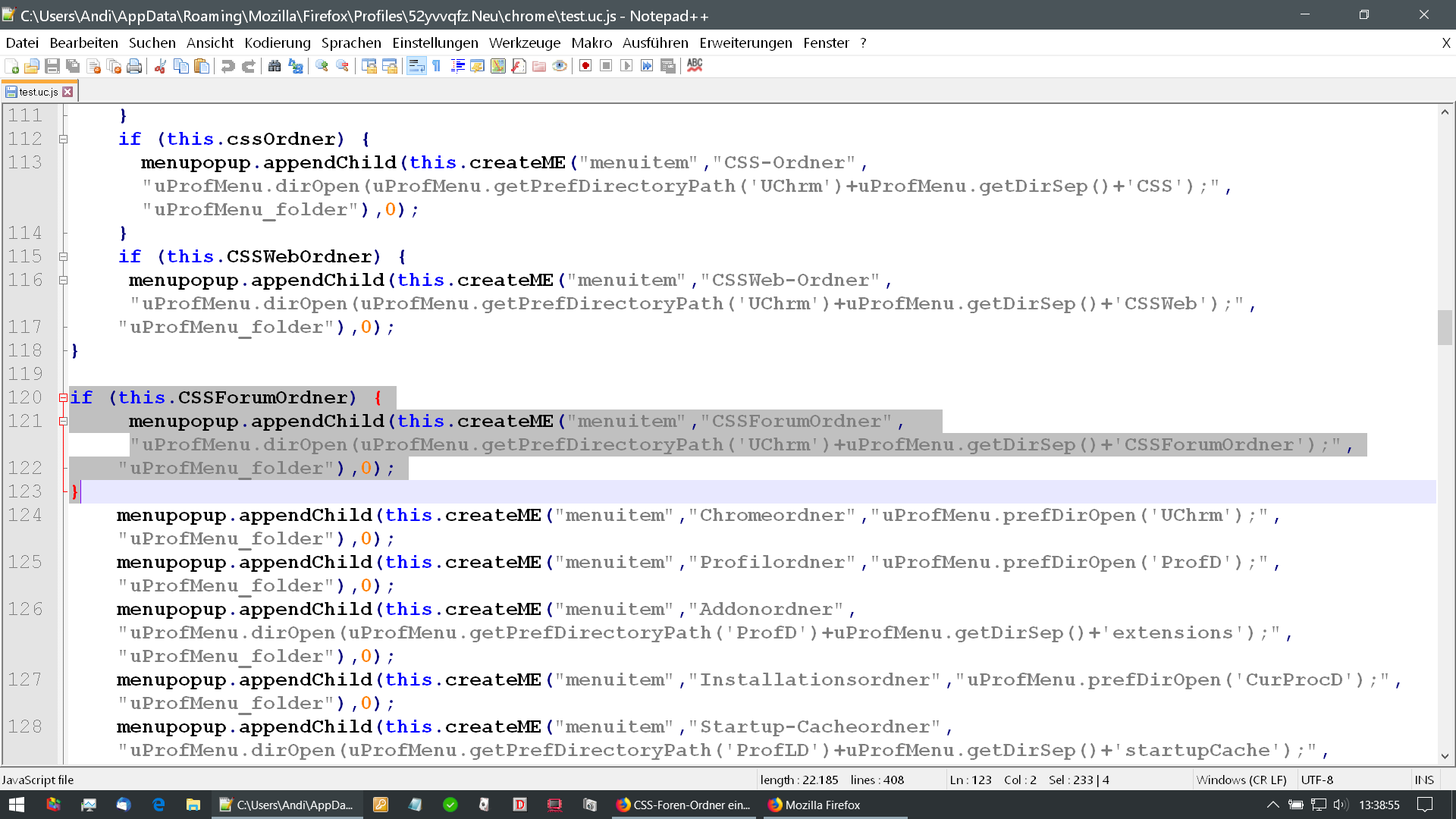 Dazu habe ich im extra_config_menu.uc.js die Zeile mit dem Einbinden habe ich vorgegeben.