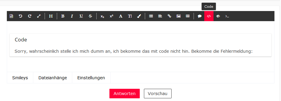 • Sorry, wahrscheinlich stelle ich mich dumm an, ich bekomme das mit code nicht hin. Bekomme die Fehlermeldung: