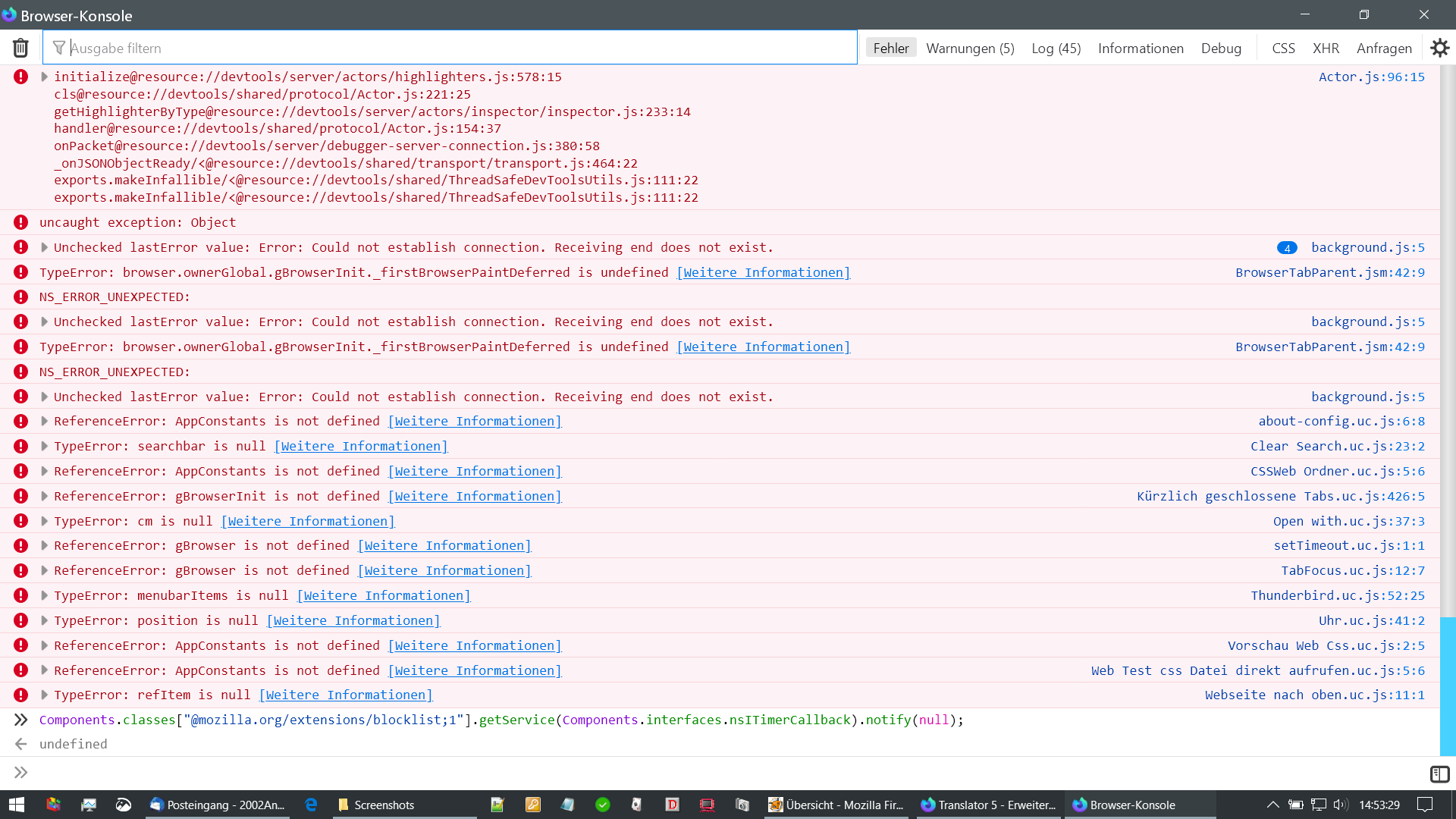 danach unter Webentwickler -->Browser Konsole (NICHT Browser Werkzeuge) aufrufen und dort in die Zeile unten folgendes rein kopieren