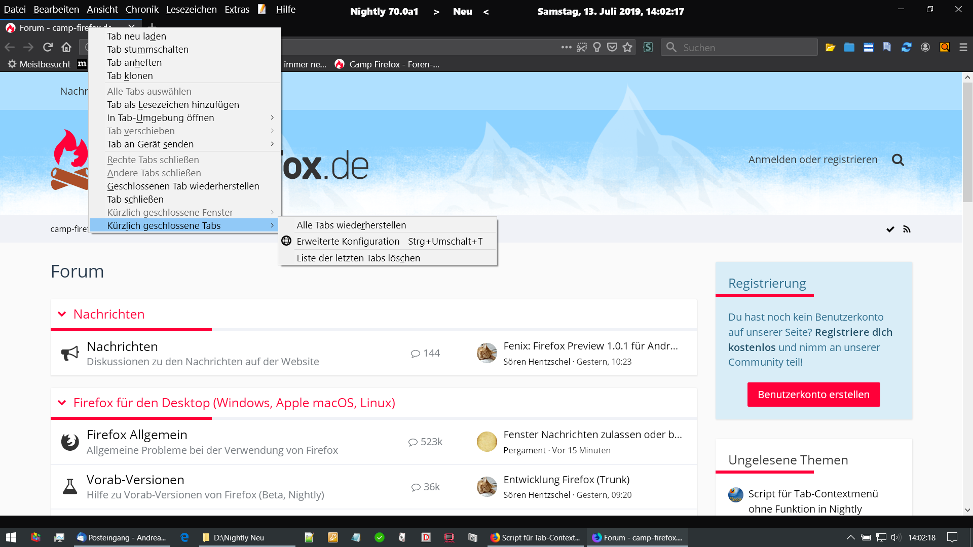 //UndoClose Tab List - Liste kürzlich geschlossener Tabs