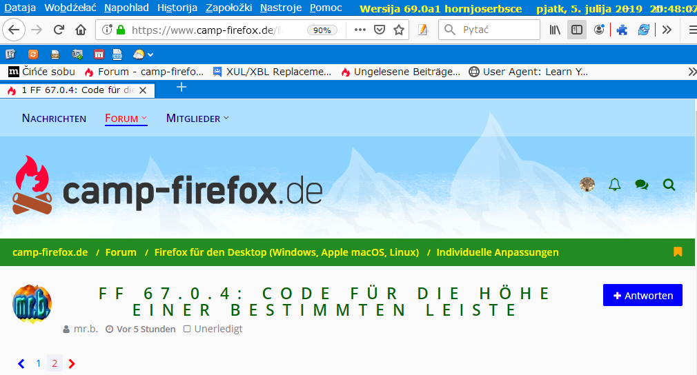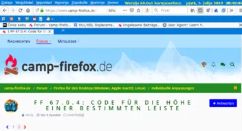 • Bei mir verschwindet die Titelleiste, wenn ich in den Preferenzen browser.tabs.drawInTitlebar auf true stelle. Möchte ich aber nicht, da dadurch meine Veränderungen in den Nightly Tested Tools unwirksam würden. Das Ergebnis ist aber das gleiche wie bei Milupo.