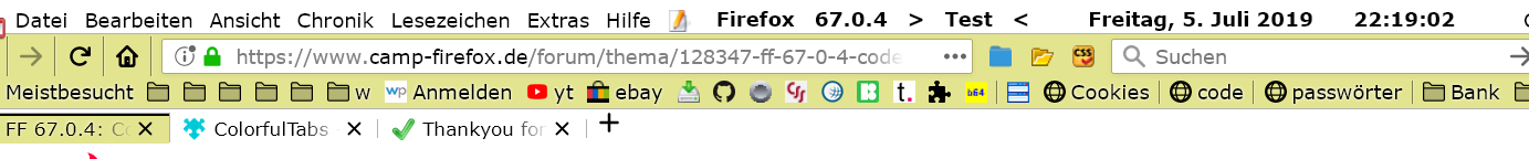 ja sollte es. Aber wenn ich colorfultabs deaktiviere, sind alle Tabs grau und der Balken hat eine (fast) weiße Farbe, die auch permanent ist.