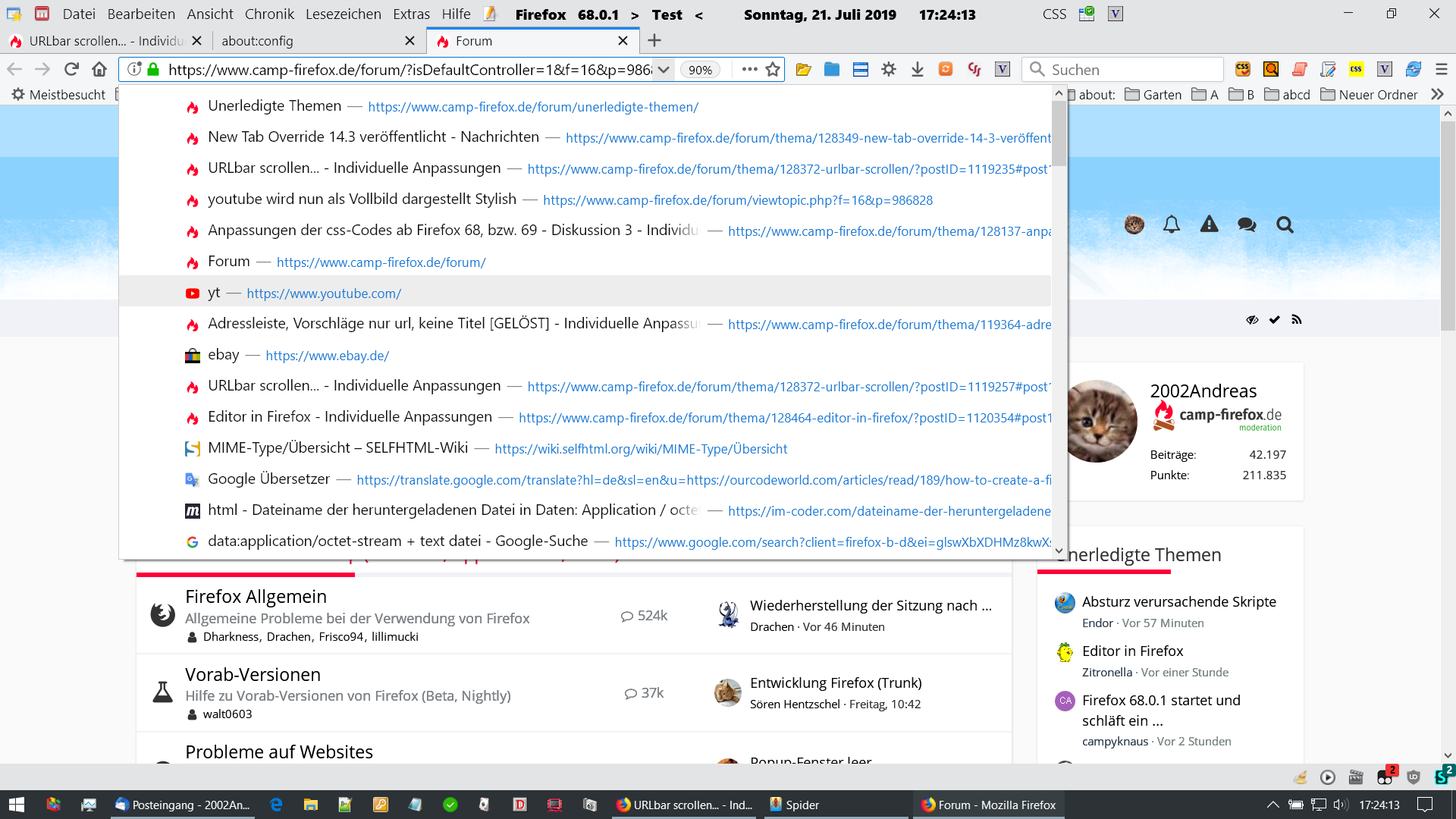 hab heute auf FF68 aktualisiert. Nun hab ich das Problem, daß beim Klick auf den Pfeil in der Adresszeile, um die Adresshistory zu sehen, den ganzen Bildschirm ausfüllt. Vorher konnte ich in der URLbar scrollen (durch Anpassungen der userChrome.css). Lässt sich dies auch in FF68 wieder realisieren?